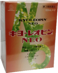 製品名 キヨーレオピンネオ 製品名(読み) キヨーレオピンネオ 製品の特徴 キヨーレオピンネオは,ニンニクを長期間かけ抽出・熟成して得られた熟成ニンニク抽出液に,肝臓分解エキス,ビタミンB6,ニコチン酸アミド及びパンテノールを配合した滋養強壮剤です。
