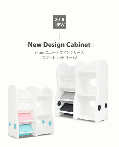 iFamの軽くてお洒落なキッズ家具シリーズ 「New Design」から本棚と整理棚がコンビになったスマートキャビネットが登場! シンプルでモダンなiFamニューデザインシリーズ! モノトーンのグラデーションカラーとパステルカラーが魅力のスマートキャビネット。