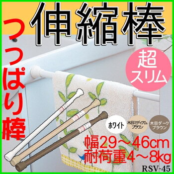 【ポイント5倍〜6日23:59迄】突っ張り棒 つっぱり棒 伸縮棒超スリム RSV-45 幅29〜46cmスリム 伸縮棒 木目調 ハンガー 洋服掛け 目隠し おしゃれ タオル タオル掛け 物干し 室内物干し 部屋干し デッドスペース アイリスオーヤマ 新生活